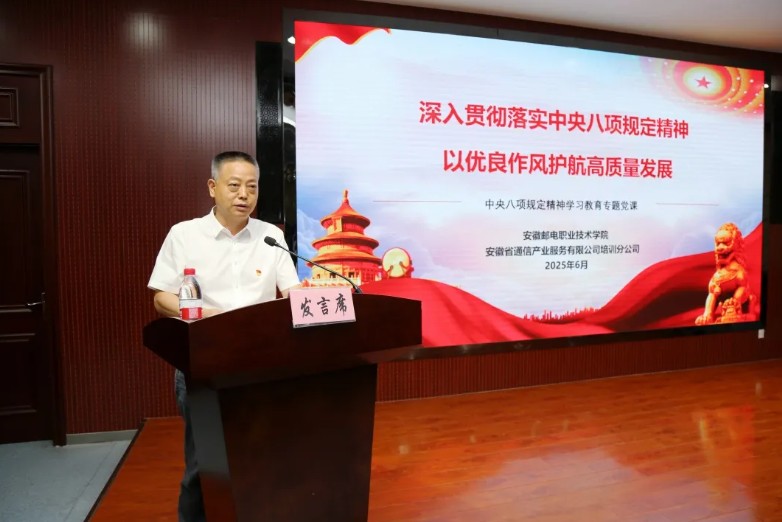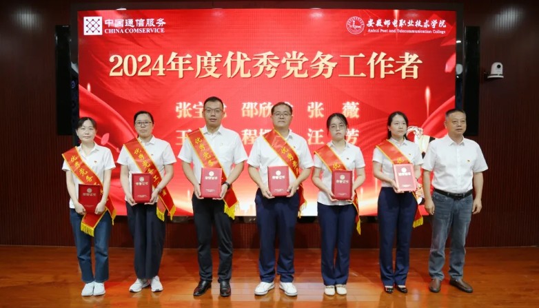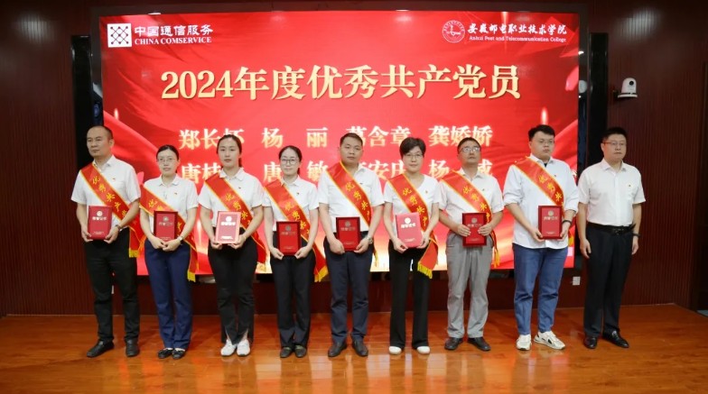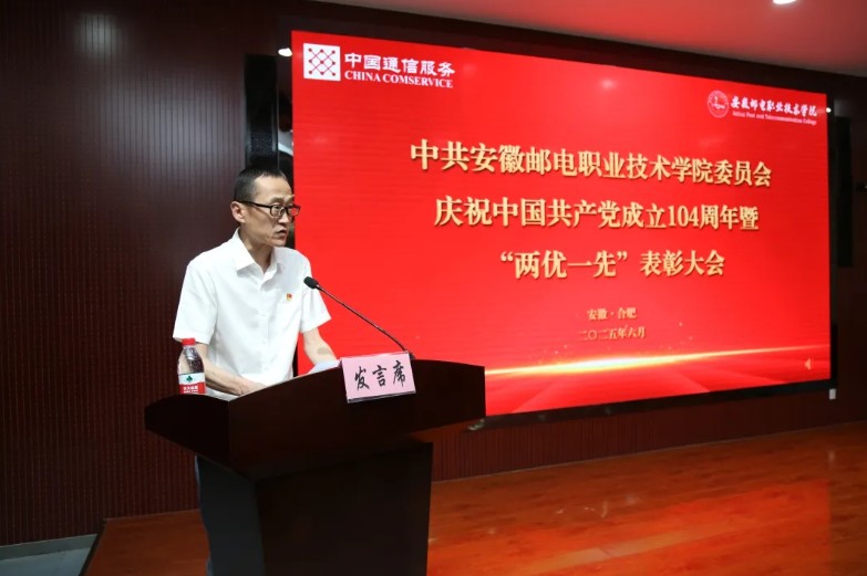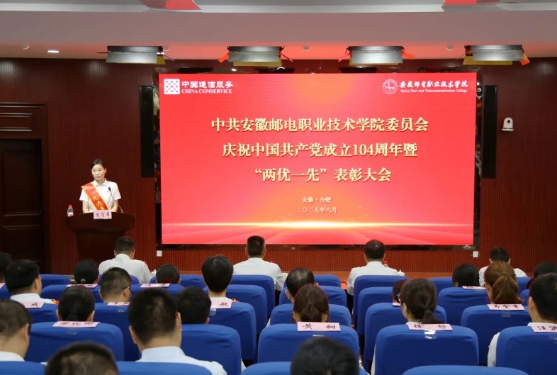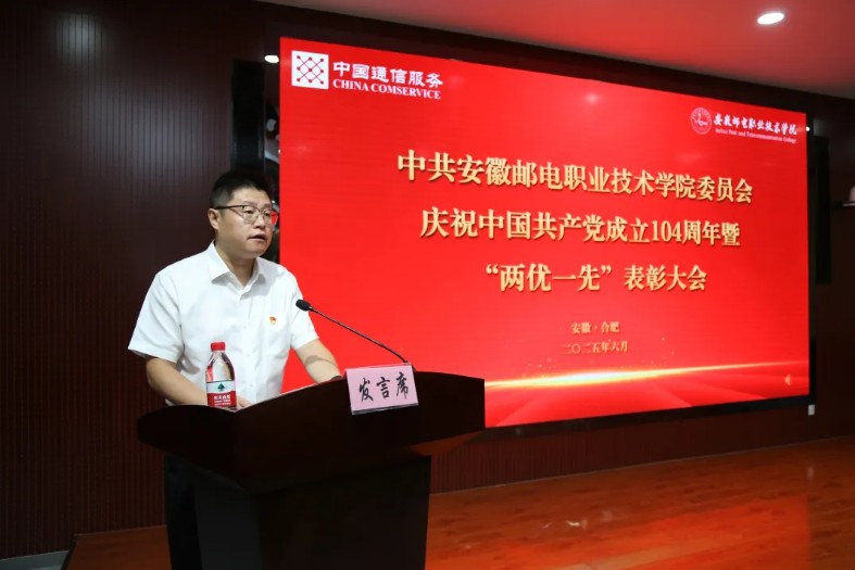 为庆祝中国共产党成立104周年,深入贯彻中央八项规定精神学习教育工作要求,2025年6月27日,安徽邮电职业技术学院党委召开庆祝中国共产党成立104周年暨“两优一先”表彰大会,学院领导班子成员、全体教职工党员、党外代表人士、入党积极分子代表等90余人现场参加会议。