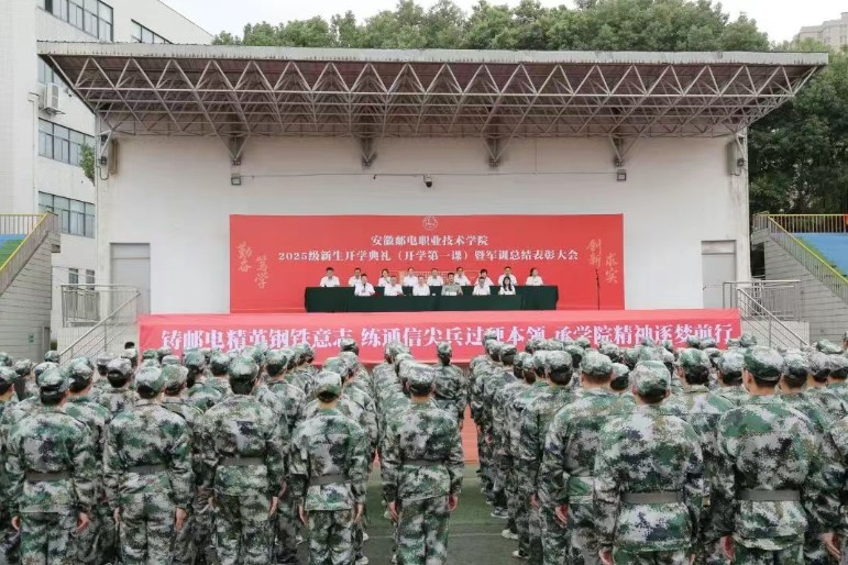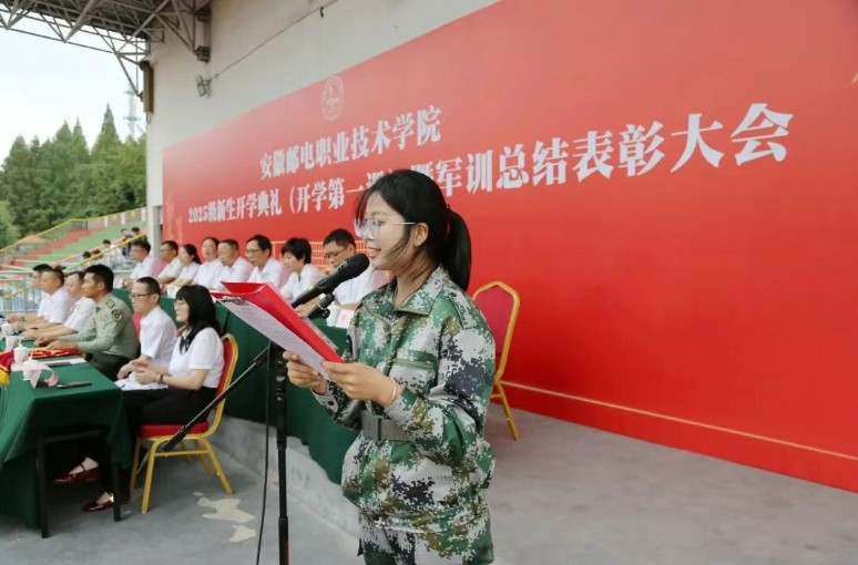 奋楫启航新学海,筑梦笃行绘新篇。9月28日,安徽邮电职业技术学院2025级新生开学典礼暨军训总结表彰大会在田径运动场举行。学院院长郭勇、党委书记阎立、副院长柏勇森、黄振陵、盛蓓蓓,国防科技大学电子对抗学院教练勤务营营长解世军,学院各部门负责人、参训教官、2025级新生参加大会。
